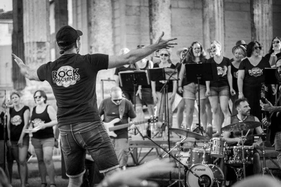 Fort d’une cinquantaine de choristes, d’un chef de « cœur » et d’un groupe de musiciens (guitare, basse, batterie), ils diffusent ensemble une énergie communicative qui ne peut laisser personne indifférent.